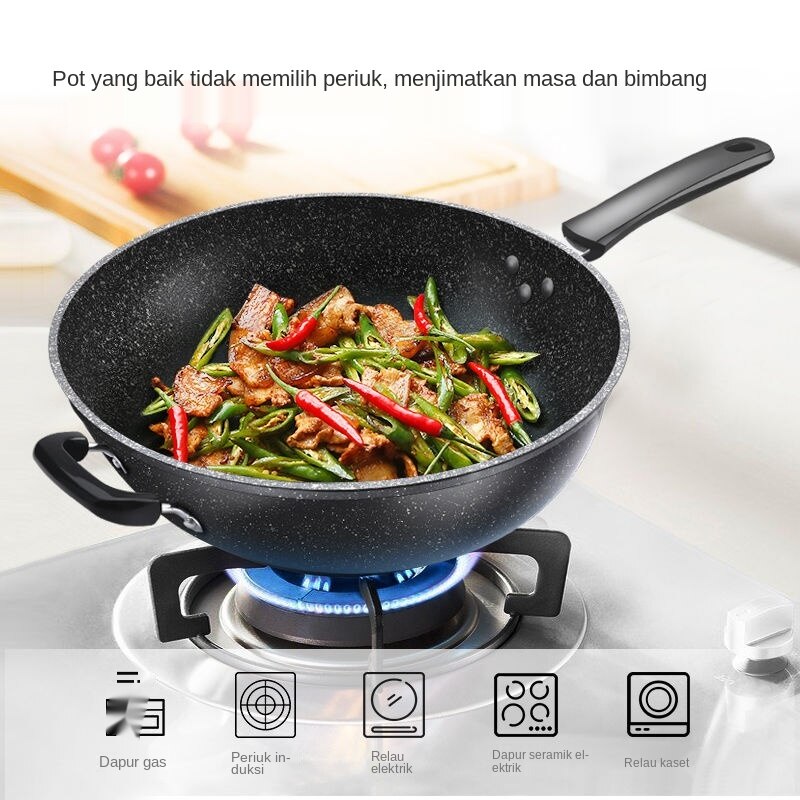 Batu Maifan Wok Kuali Tidak Melekat Isi Rumah Pan Besi Pan Tanpa Minyak Asap Memasak Periuk Pemasak Induksi Kompor Gas Dapur Sejagat Shopee Malaysia